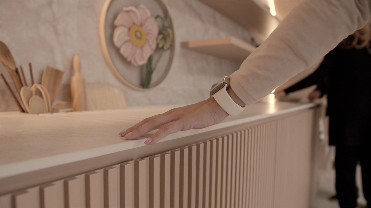 The system was built across WatchOS, Vue.js, Node-RED, TouchDesigner, and Cinema 4D.